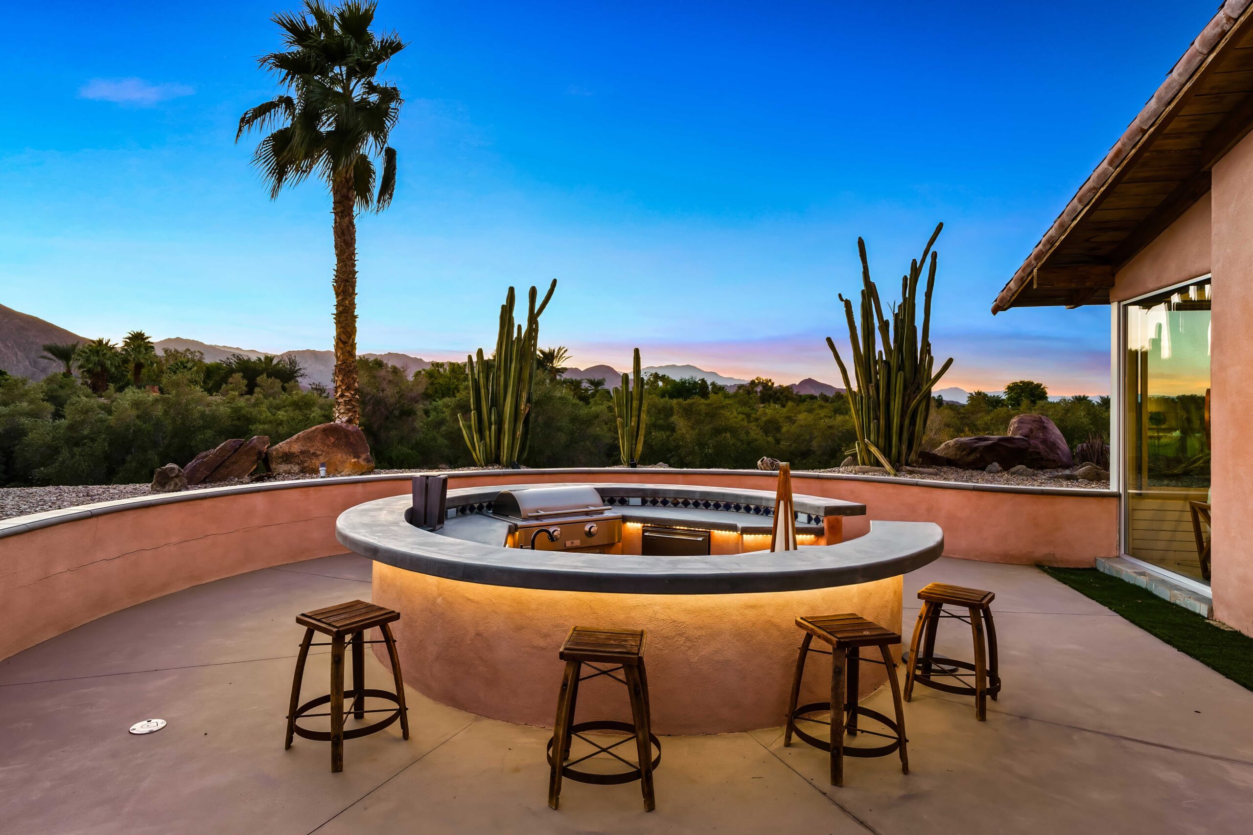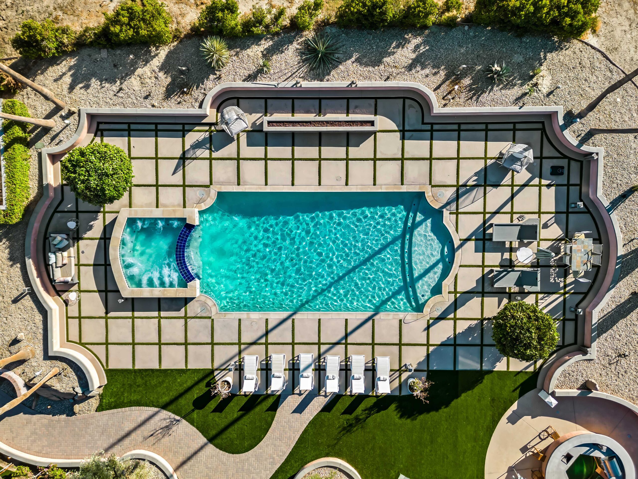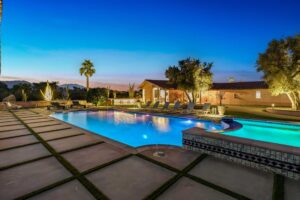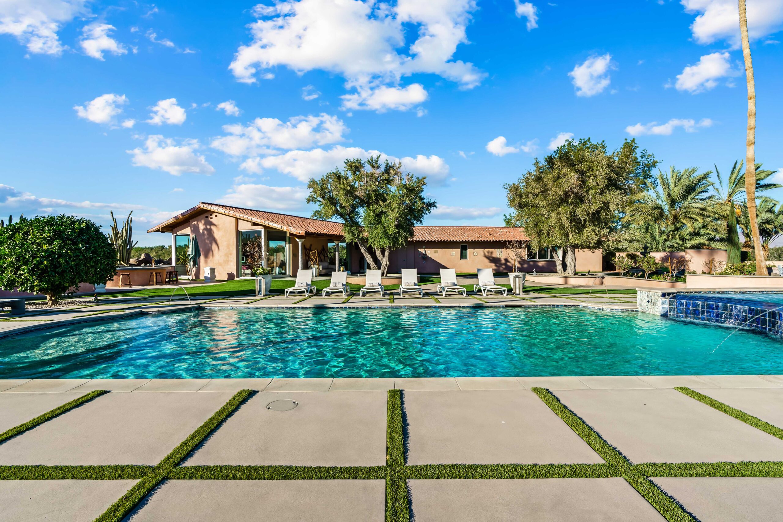 Step outside to discover your very own oasis filled with endless opportunities for relaxation and entertainment. Dine al-fresco at the expansive circular BBQ, take a refreshing dip in the 40-foot Romanesque pool, or unwind in the jacuzzi that accommodates over 10 guests, complete with soothing jets to melt away your cares. As night falls, gather around the 20ft fire pit or enjoy the tranquil ambiance created by soothing water features, perfect for stargazing or sharing meals with loved ones. With the main villa and detached guest casita, combined with a wealth of amenities and stunning surroundings, The Olive Orchard Italian Villa is not just a getaway—it’s an unforgettable experience waiting for you to make it your own. Book your stay today and immerse yourself in the magic!