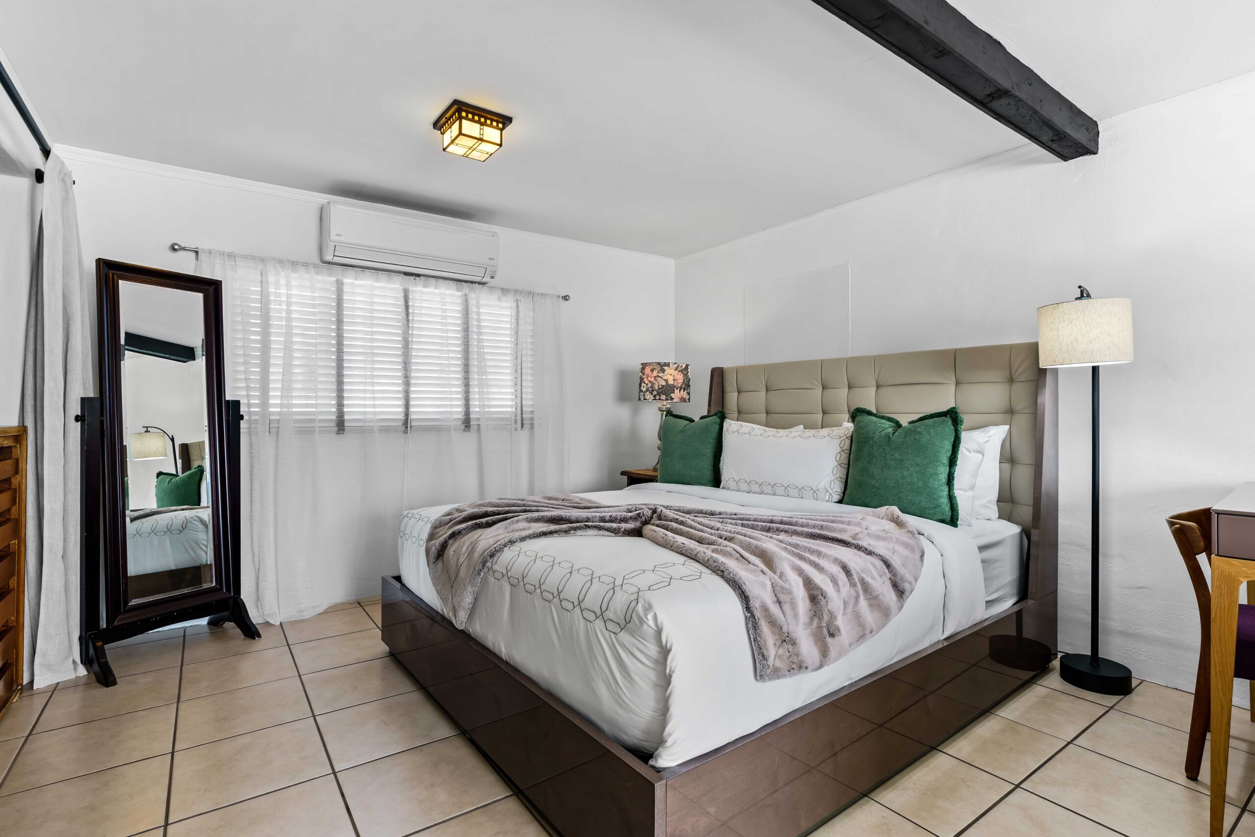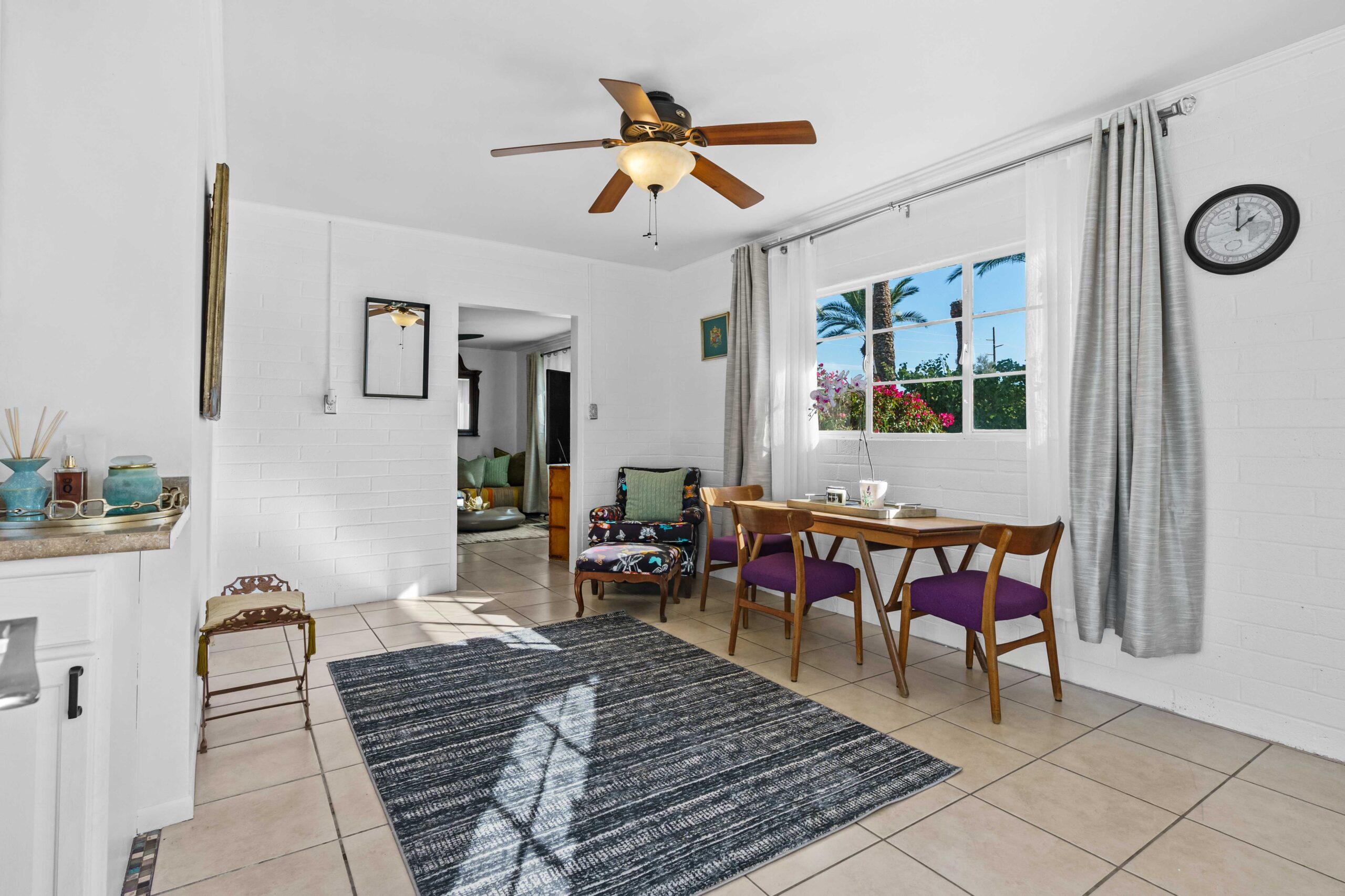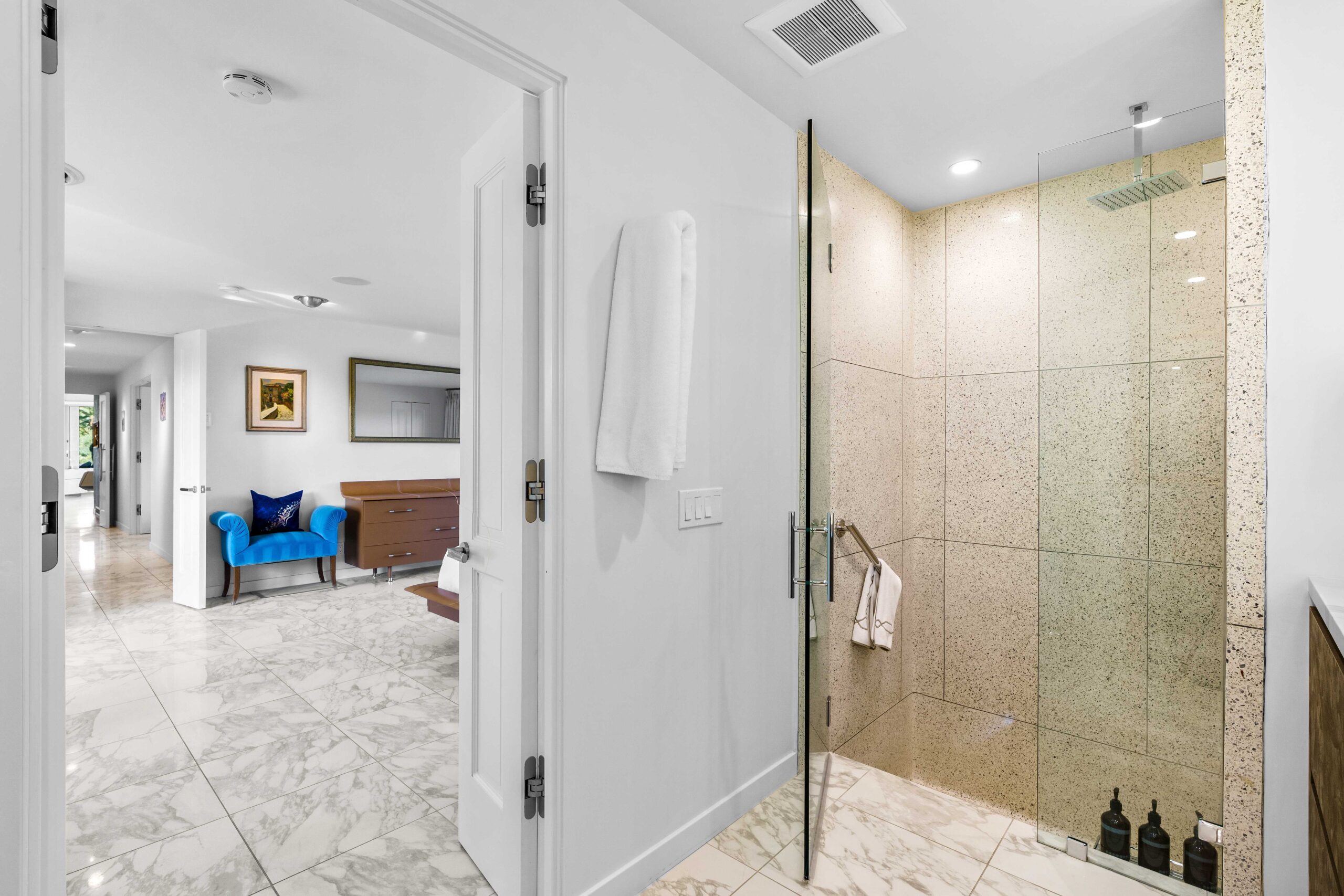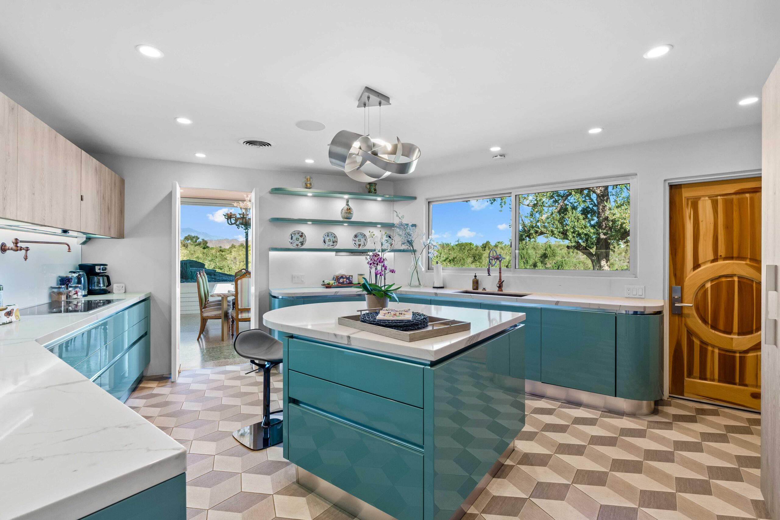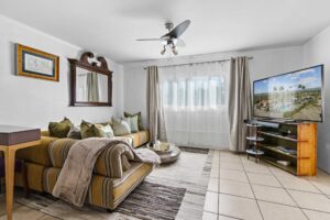 At The Olive Orchard Italian Villa, sophistication seamlessly blends with modern luxury. The villa is equipped with smart home Control 4 technology, custom cabinetry imported from Italy, and top-of-the-line appliances designed to cater to your every need. The sleek living room features a contemporary design with a hidden TV and a bar that rises at the touch of a button, allowing you to effortlessly transition from a cozy movie night to cocktails with friends. Two beautifully designed bedrooms in the main house are adorned with plush linens and unique decor, each boasting sliding doors that lead to spacious walk-in closets and mirrors that double as screens for your favorite shows. For added privacy, a charming detached casita with its own cozy bedroom awaits your guests or family.