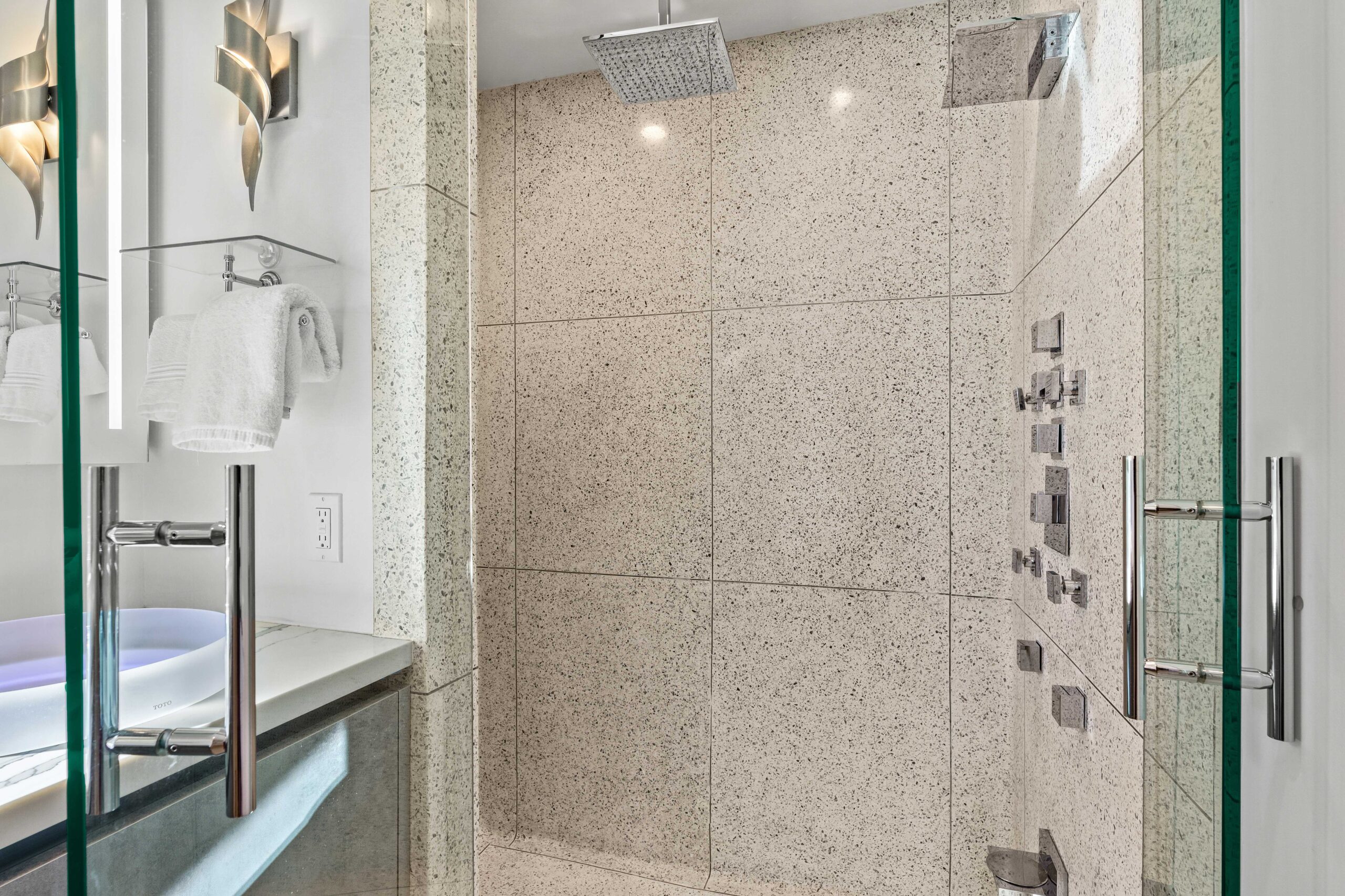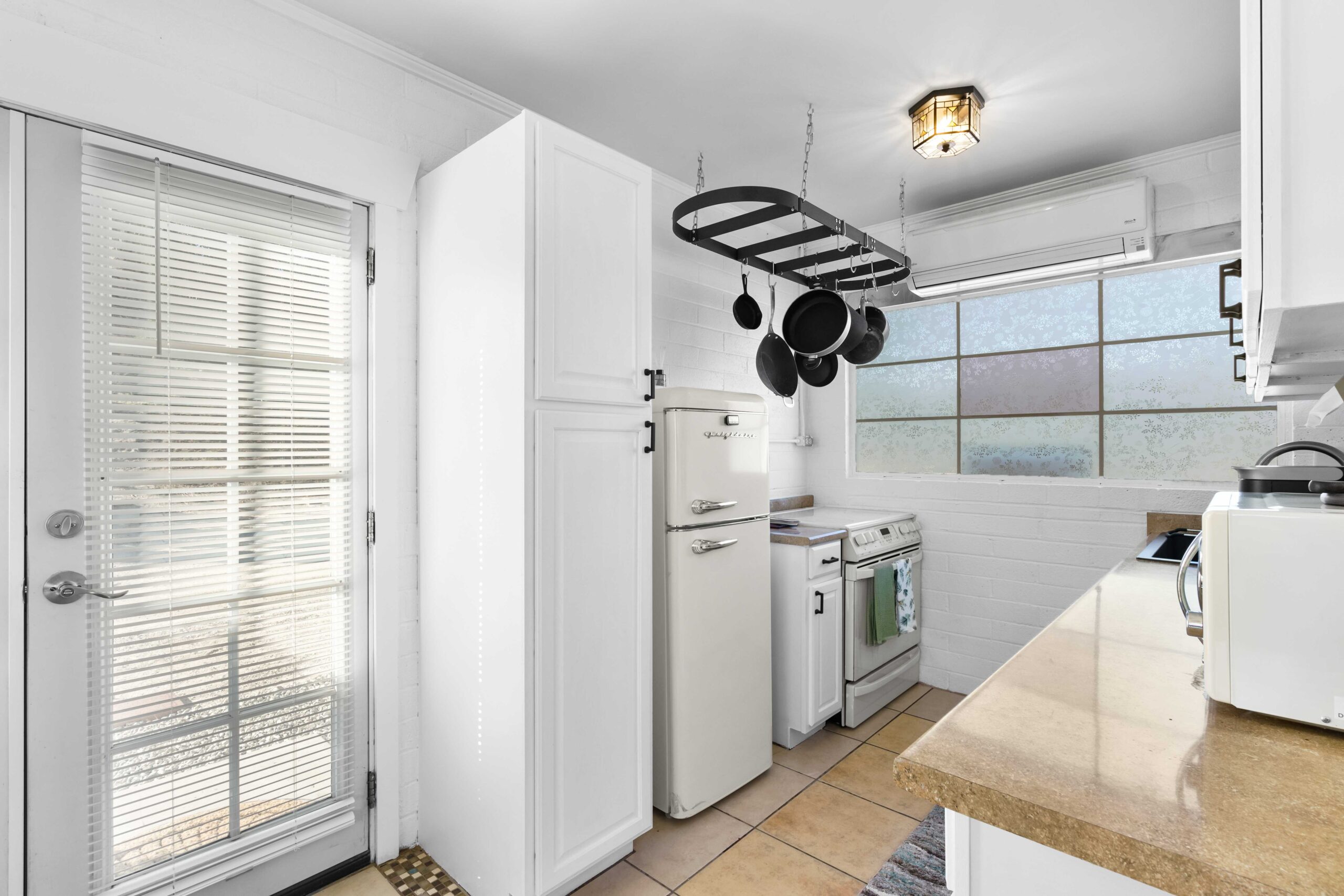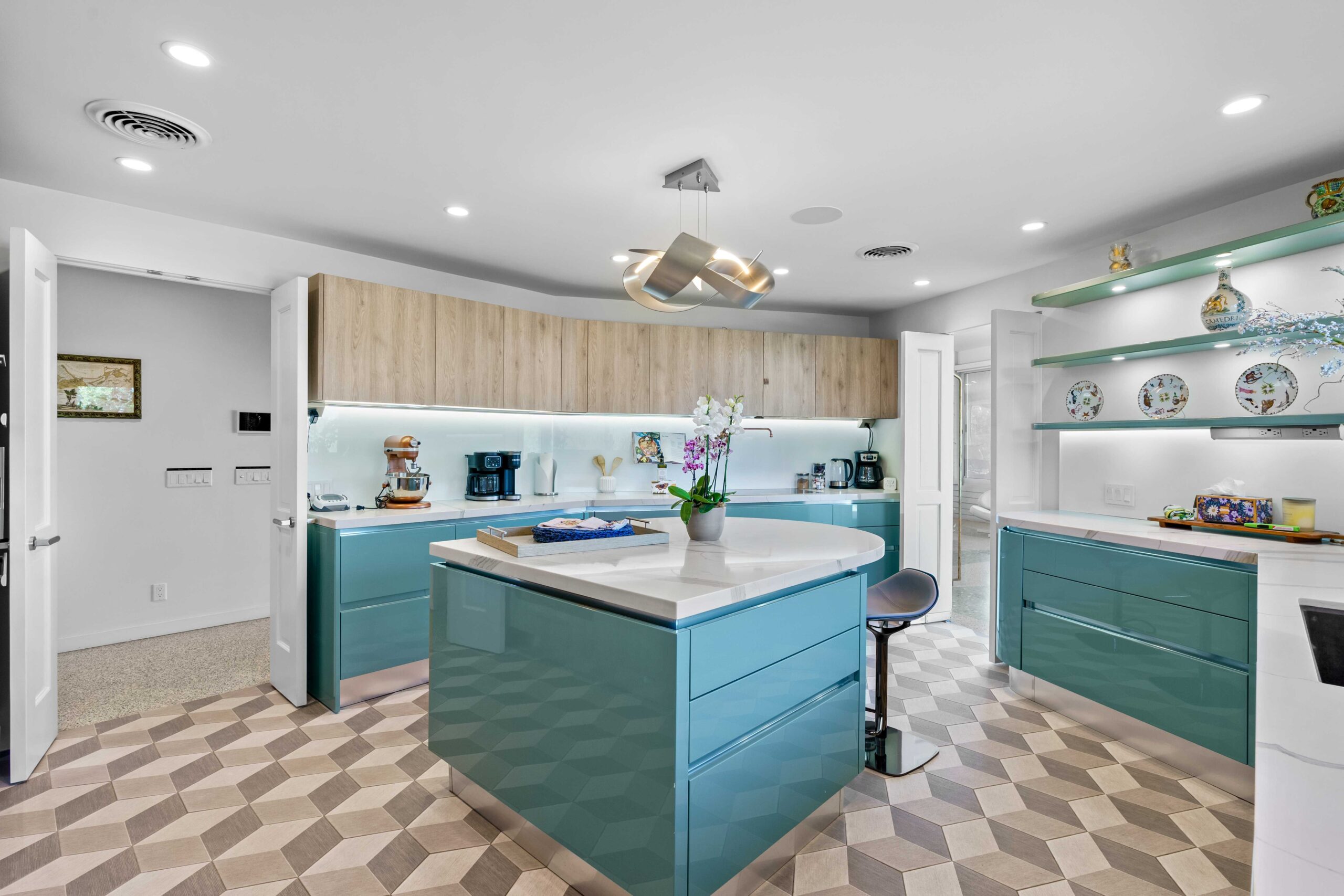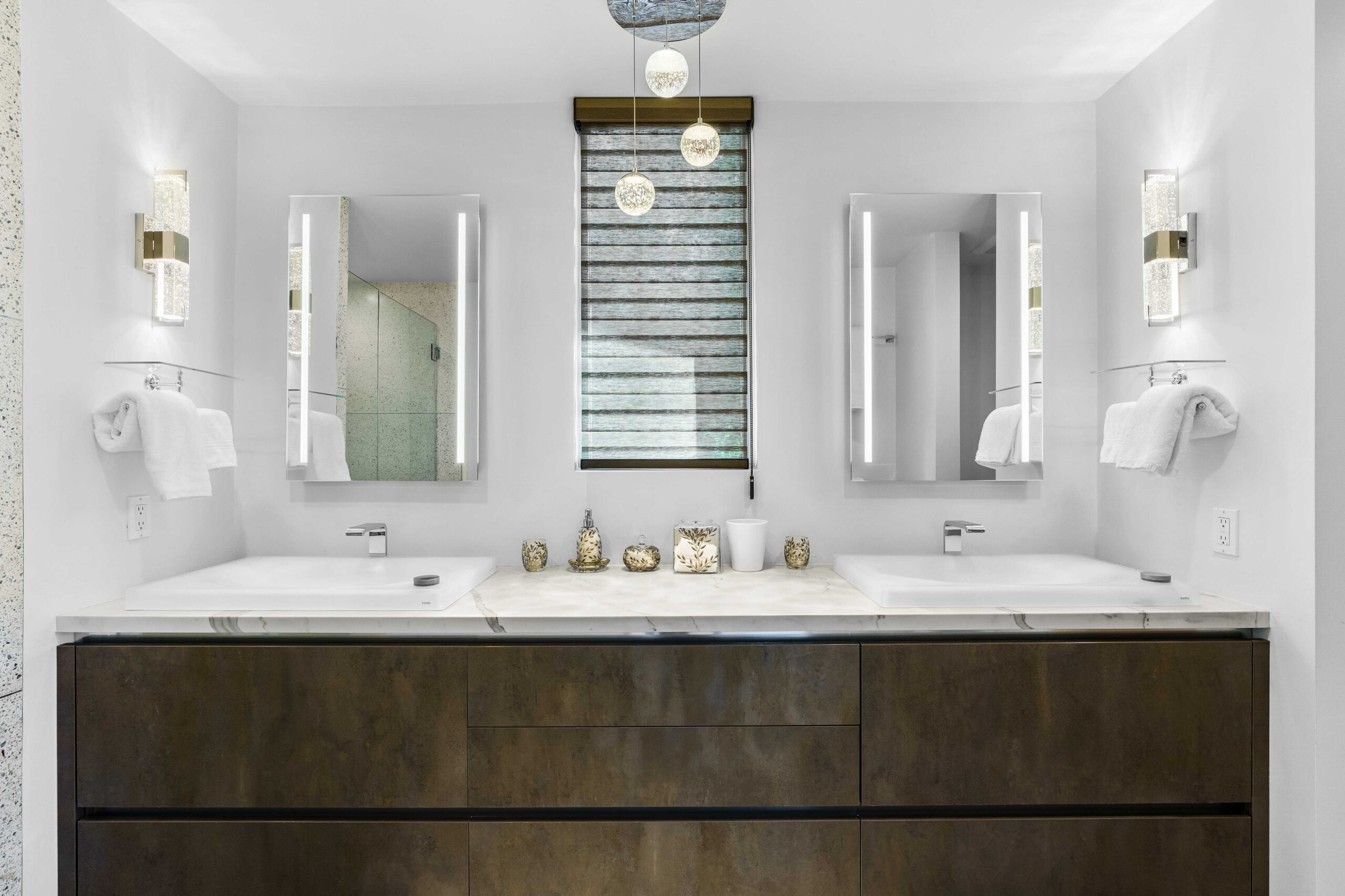 At The Olive Orchard Italian Villa, sophistication seamlessly blends with modern luxury. The villa is equipped with smart home Control 4 technology, custom cabinetry imported from Italy, and top-of-the-line appliances designed to cater to your every need. The sleek living room features a contemporary design with a hidden TV and a bar that rises at the touch of a button, allowing you to effortlessly transition from a cozy movie night to cocktails with friends. Two beautifully designed bedrooms in the main house are adorned with plush linens and unique decor, each boasting sliding doors that lead to spacious walk-in closets and mirrors that double as screens for your favorite shows. For added privacy, a charming detached casita with its own cozy bedroom awaits your guests or family.