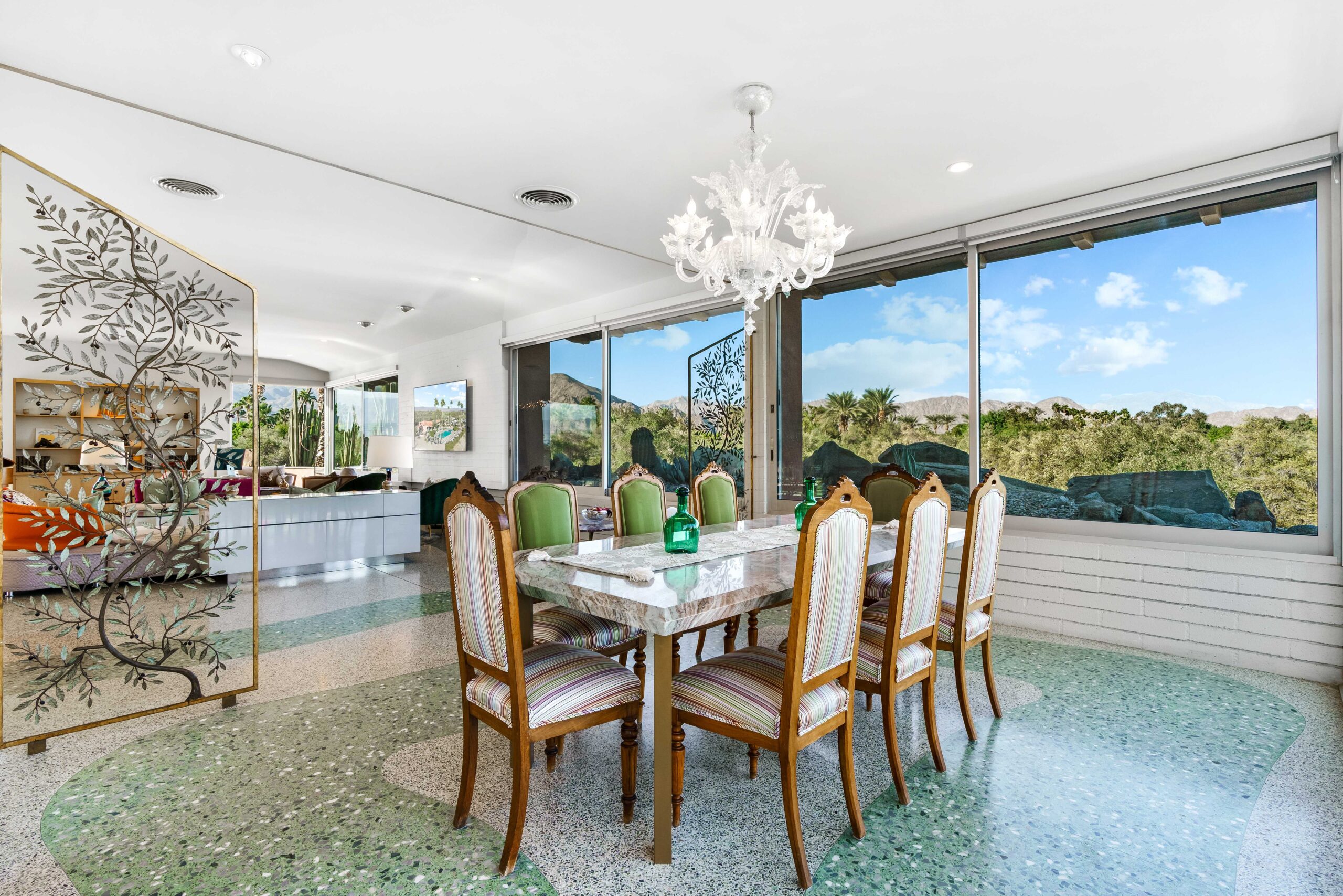 Prepare to be captivated by the breathtaking 360° views at The Olive Orchard Italian Villa, where lush polo grounds, serene olive trees, and majestic desert mountains create a stunning backdrop. Nestled on a sprawling 9.25-acre estate, this luxurious villa is an entertainer’s paradise, conveniently located just moments from the renowned Empire Polo Fields, the iconic site of Coachella and Stagecoach Music Festivals. This villa offers an unparalleled experience in a picturesque setting. Show all descriptionThe space