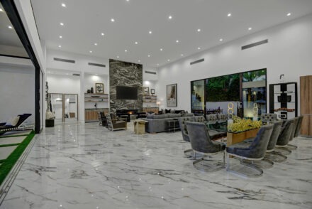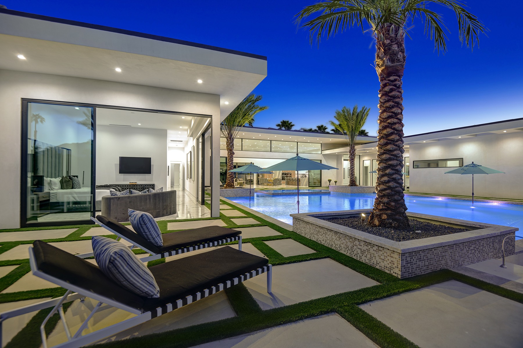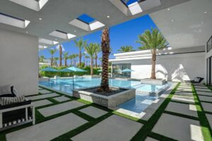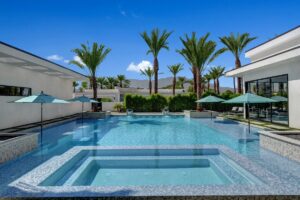 Embraced by panoramic mountain views from its exclusive and private setting at the luxurious new gated enclave of Bravo 7 in the heart of Rancho Mirage, this brand-new Modern Chic estate presents the opportunity to live life in a grand fashion that many can only dream of. Imagine entertaining by the pool, relaxing in a private suite, or simply unwind with cocktails as the sun sets beyond Mount San Jacinto.