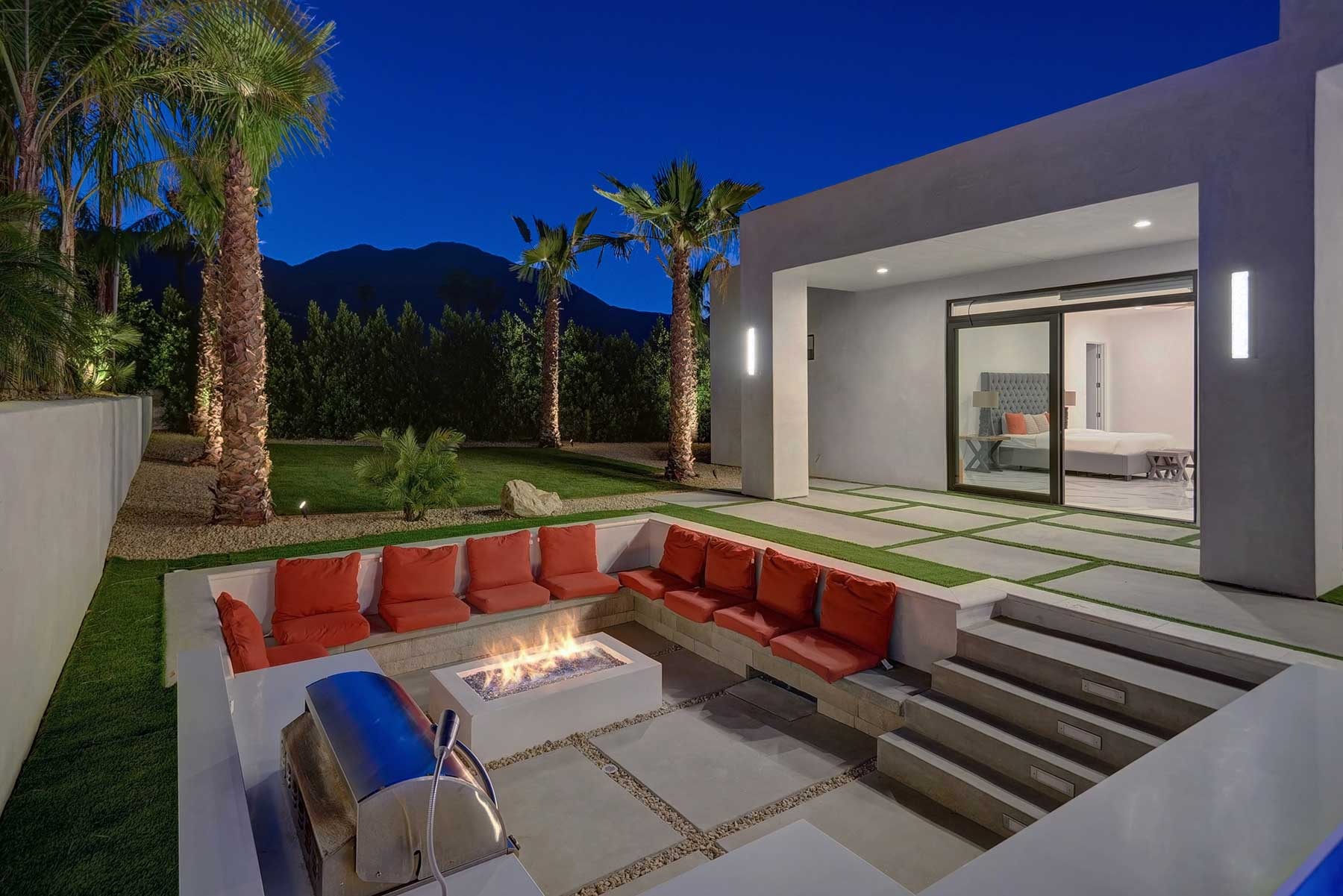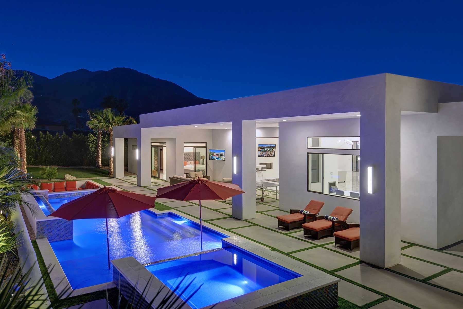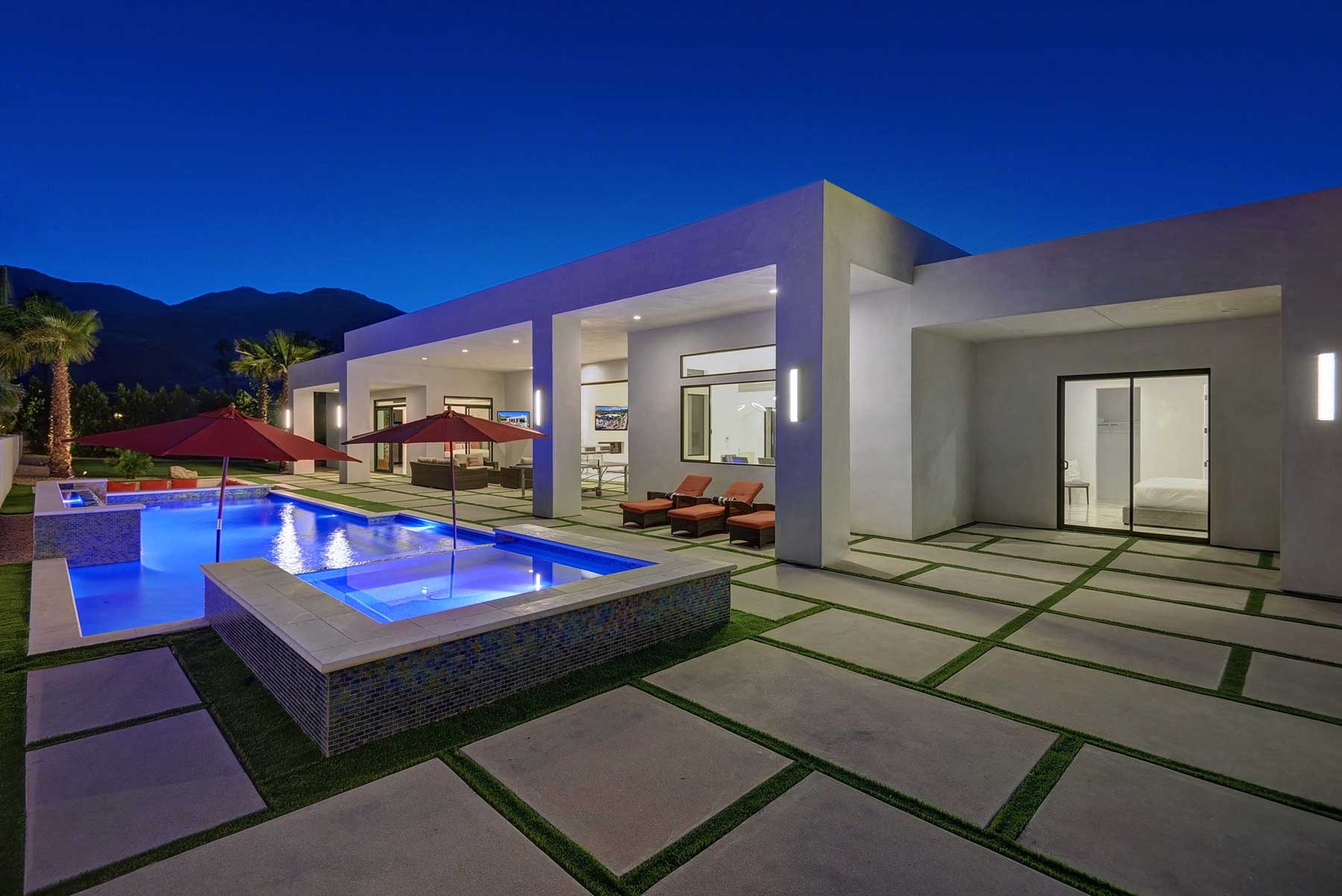 This dream Home is a brand new construction.4 bedroom 4.5 bath home which is the envy of the neighborhood! Location is next to El Paseo, the Rodeo Drive of Palm Springs and only ten minutes away from the Tennis Tournament in Indian Wells and 15 mts to the famous Coachella music festivals. This House has a resort style backyard. 43 feet pool long with a custom made quartz bar which has 4 sitting stools. Enjoy your favorite drinks or food while in the pool. Gorgeous 20 feet waterfall, and a very large tanning area to lie down and enjoy the sun inside the pool. For families with kids tanning area serves as their children’s pool. Spa has a waterfall that overflows into the pool, and fits ten people very comfortable. Adjacent to the pool a sunken fireplace area. It has a BBQ, fridge to keep your drinks cold, sitting for ten, and a gorgeous fireplace. Sunk in area is at pool level so you can keep the fun with your friends and family at the pool. There is also a plasma in the patio so you can watch your favorite sports or movies while enjoying the pool. Total 7 plasmas with all the channels including HBO, Showtime, Starz, Cinemax and more. Grass areas, and wonderful palm trees everywhere.